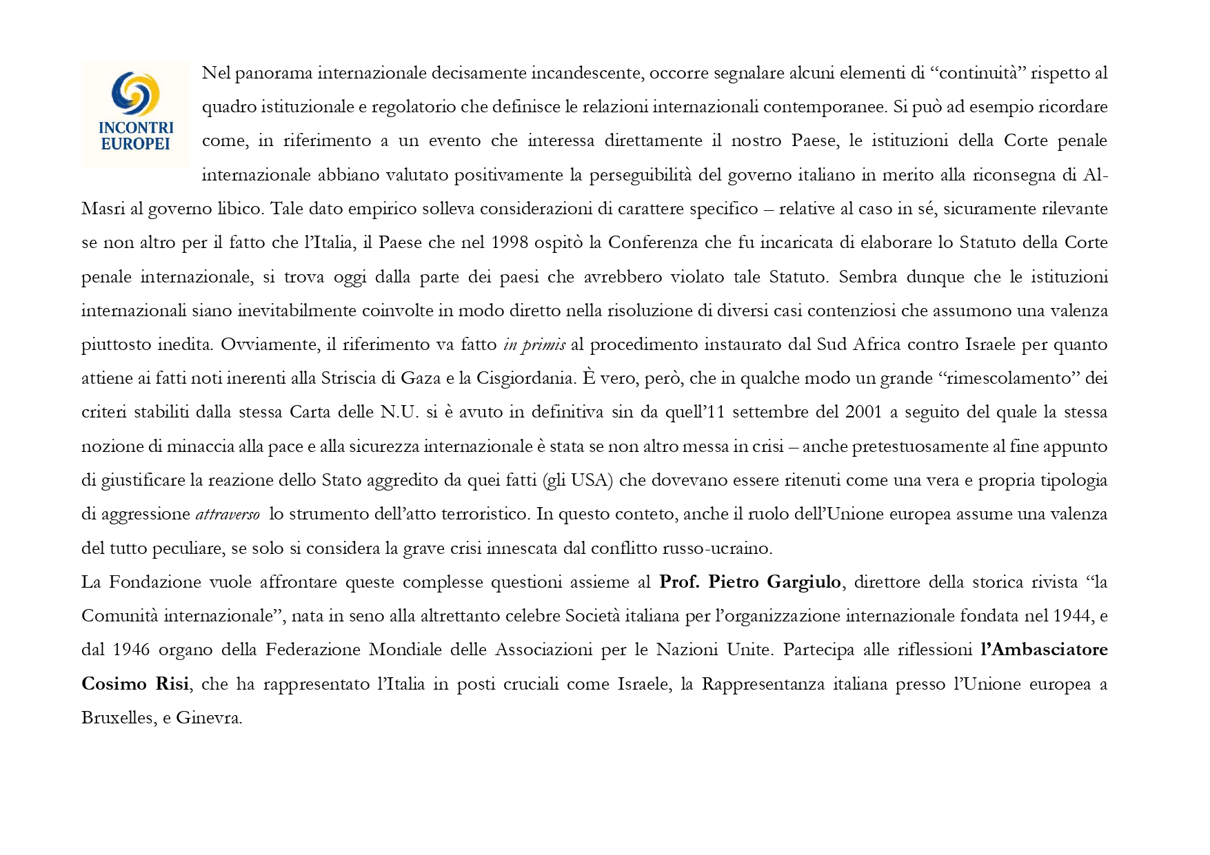 Seminario "A.D. 2026: quo vadis, pace e sicurezza internazionale? Lo status delle relazioni internazionali nell’impotenza apparente del diritto e delle organizzazioni internazionali".